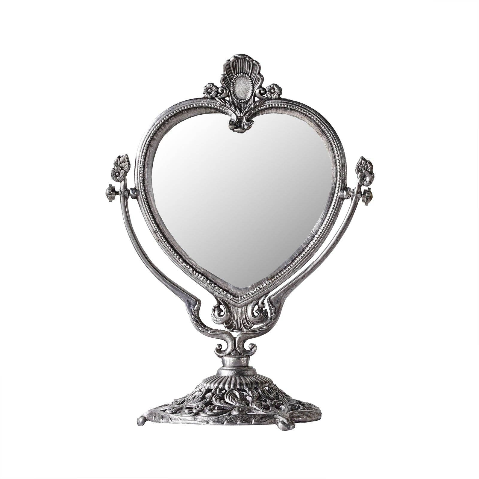 Heart-shaped as its name implies, the Coeur Mirror is an ornately-styled standing mirror. The Victorian-era styling includes a crested top and floral motifs. The Coeur Mirror is finished in antique silver.