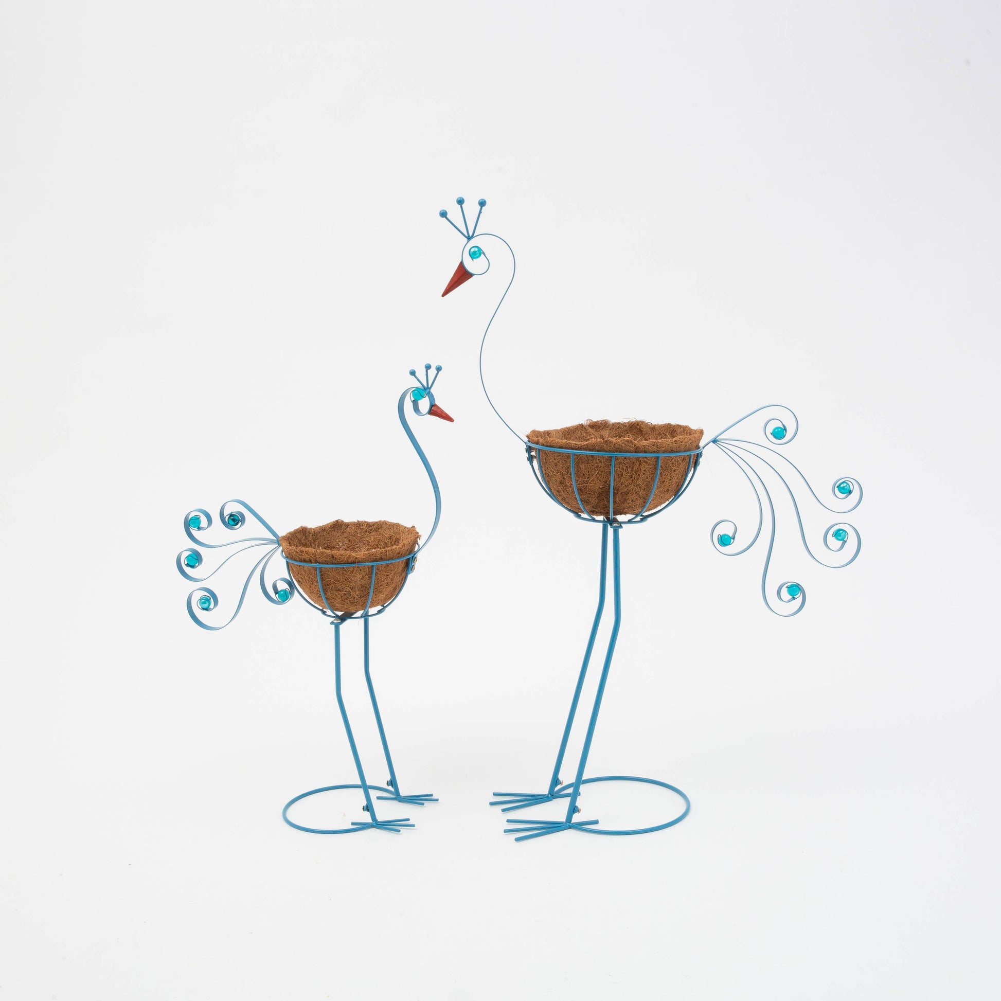 Metal Peacock with Coco Mat Planter. Set of 2.