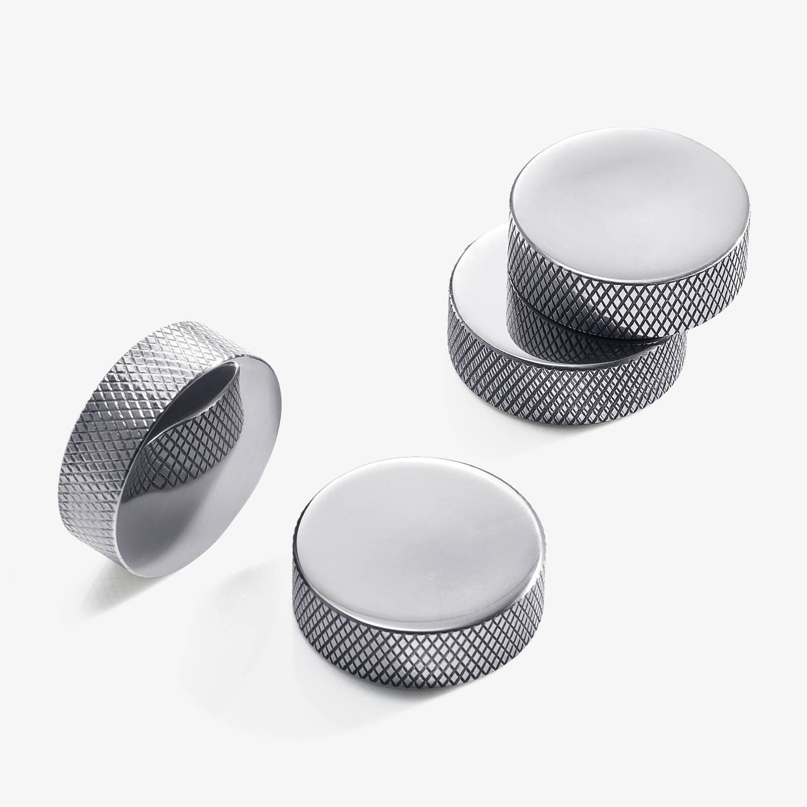 Complete Set: The 7-piece kit comprises four stainless steel ice cubes (Whiskey Stones) shaped and scaled to resemble hockey pucks, along with tongs shaped like hockey sticks, and two sophisticated whiskey glasses. The Whiskey Stones are designed with a stainless steel exterior and a cooling gel interior, enabling rapid cooling and maintaining cold temperatures for an extended duration.