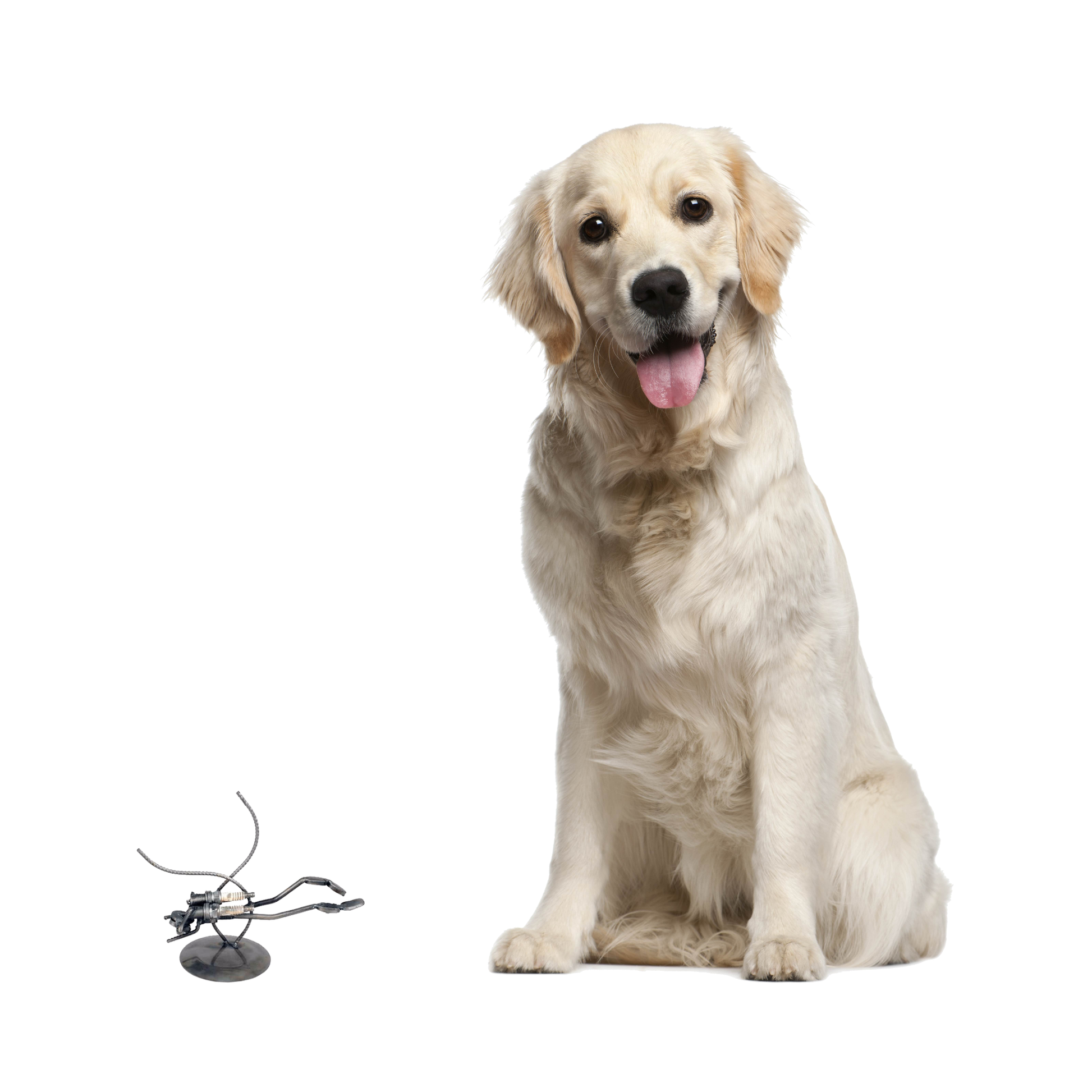 Gliding silently amid seaweed, a scuba diver propels himself through the sea with flippers. He carries spark plugs as oxygen tanks on his back. This underwater explorer is crafted from an amazing assortment of bicycle and automobile parts. Armando Ramírez recycles them as rustic art.