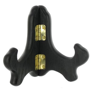 This small black easel is perfect for holding Classic Legacy oyster shell art. It is 3" tall and the oyster shell can rest perfectly to be displayed on your bookshelf, table, or desktop. It is black wood with brass hinges.
